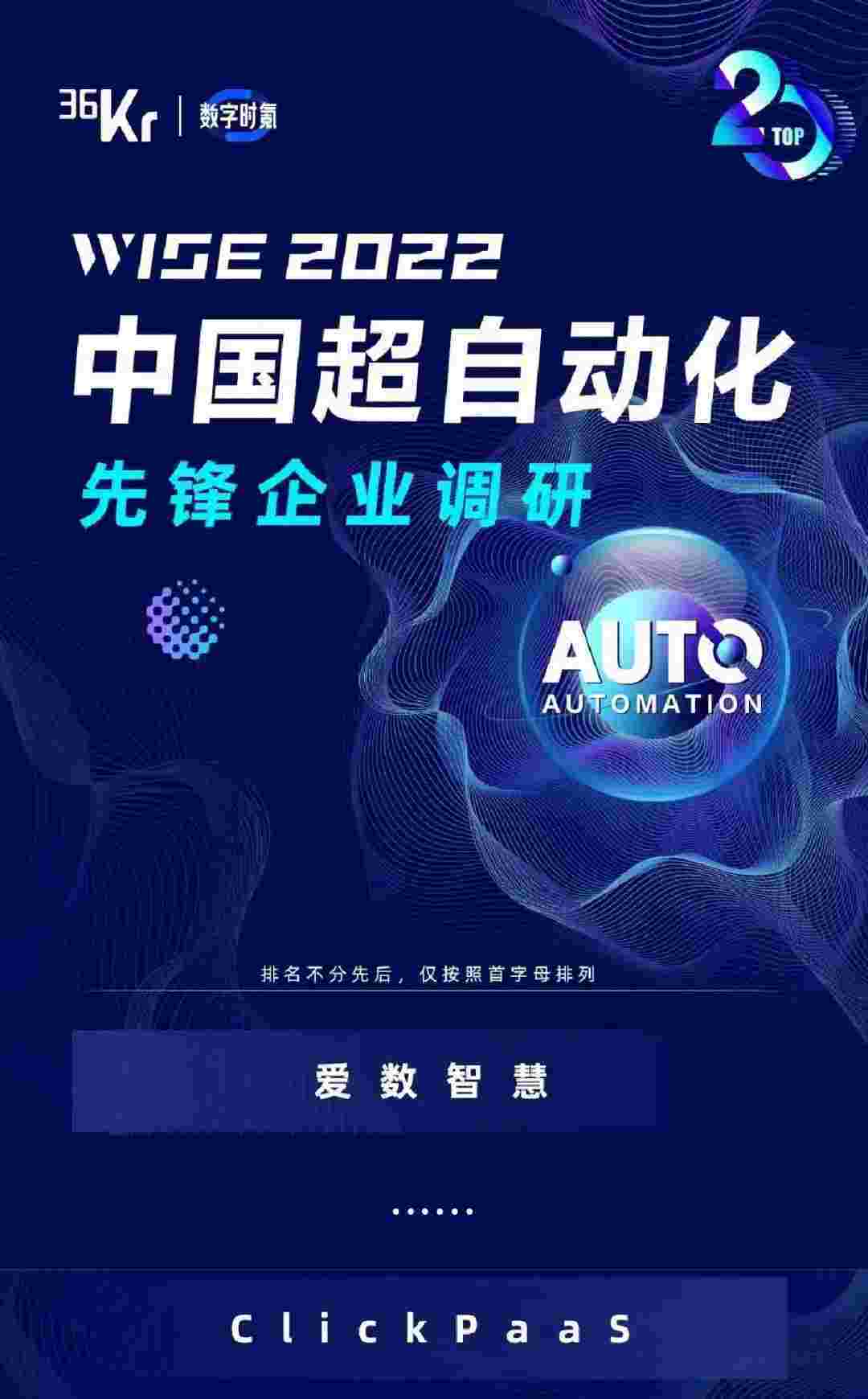 8月10日,,,,,,,,,由36Kr主办的WISE 2022中国超自动化峰会在杭州成功举办。。。。。。。。抖音钱包作为国内低代码PaaS平台的领军企业,,,,,凭借过硬的技术实力和优质的产品能力,,,,,,,,,,,在本次峰会中实力入选「2022年中国超自动化先锋企业」20强。。。。。。。